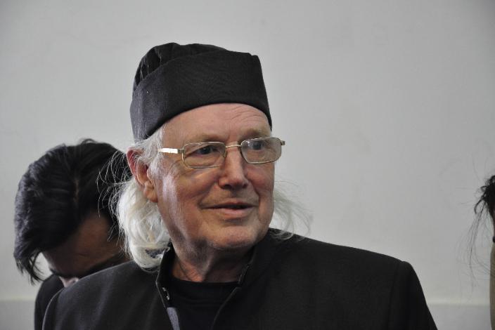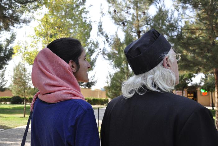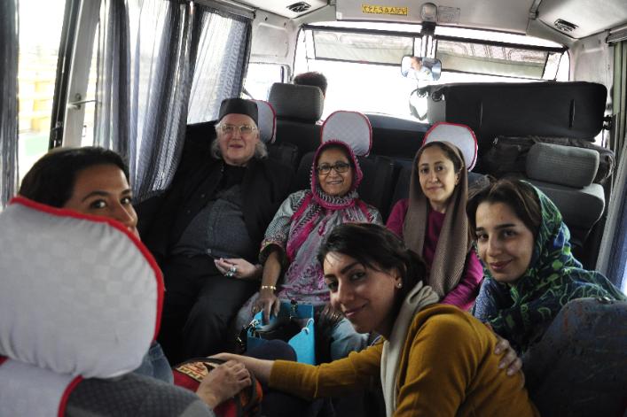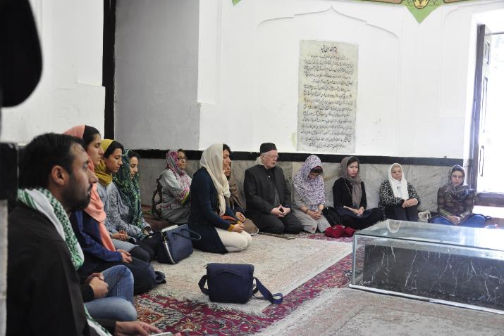 | Being guided round the shrine complex by the official guide. For Ladies complete covering was required. |
