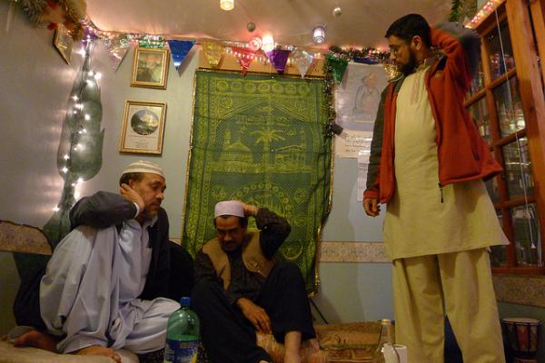 Riaz, Luqman and Mikail Ali Clarke in Zahuri Manzil during Urs