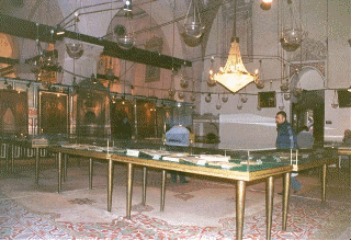 | Above: Access route to the manuscript exhibition (in what was once the Mosque). Photographs courtesy of Zeenat Van der Heiden and Dennis (from the Netherlands) Below: an exhibition of Qur'an copies, Mesnevi and other important manuscripts. |