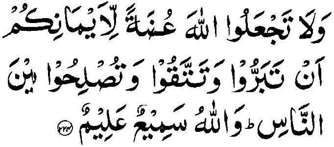 To use the name of God for refraining from any righteous act or doing a good act or acting as a peacemaker between persons was the practice prevalent in pagan Arabia. This practice is deprecated here in this verse and people are ordered not to do so.