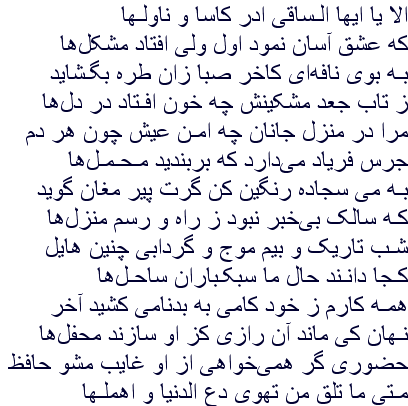 This is the opening verse of the Divan of Hafiz: