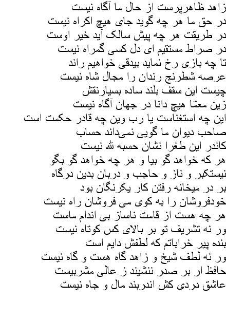 Varna lotfe sheikh o zaahed gaah hast o gaah nist