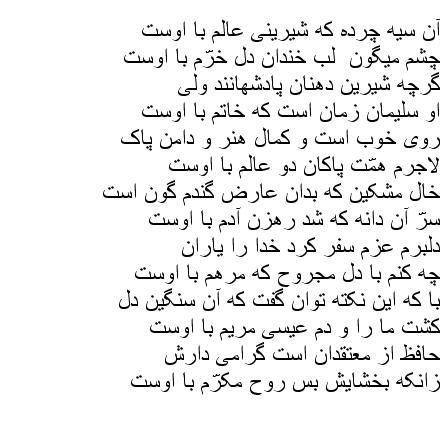 Ghoote jaane Hafezash dar khandeye zire lab ast