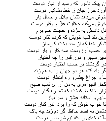 Taa khaabe khosh ke raa barad andar kenaare doost